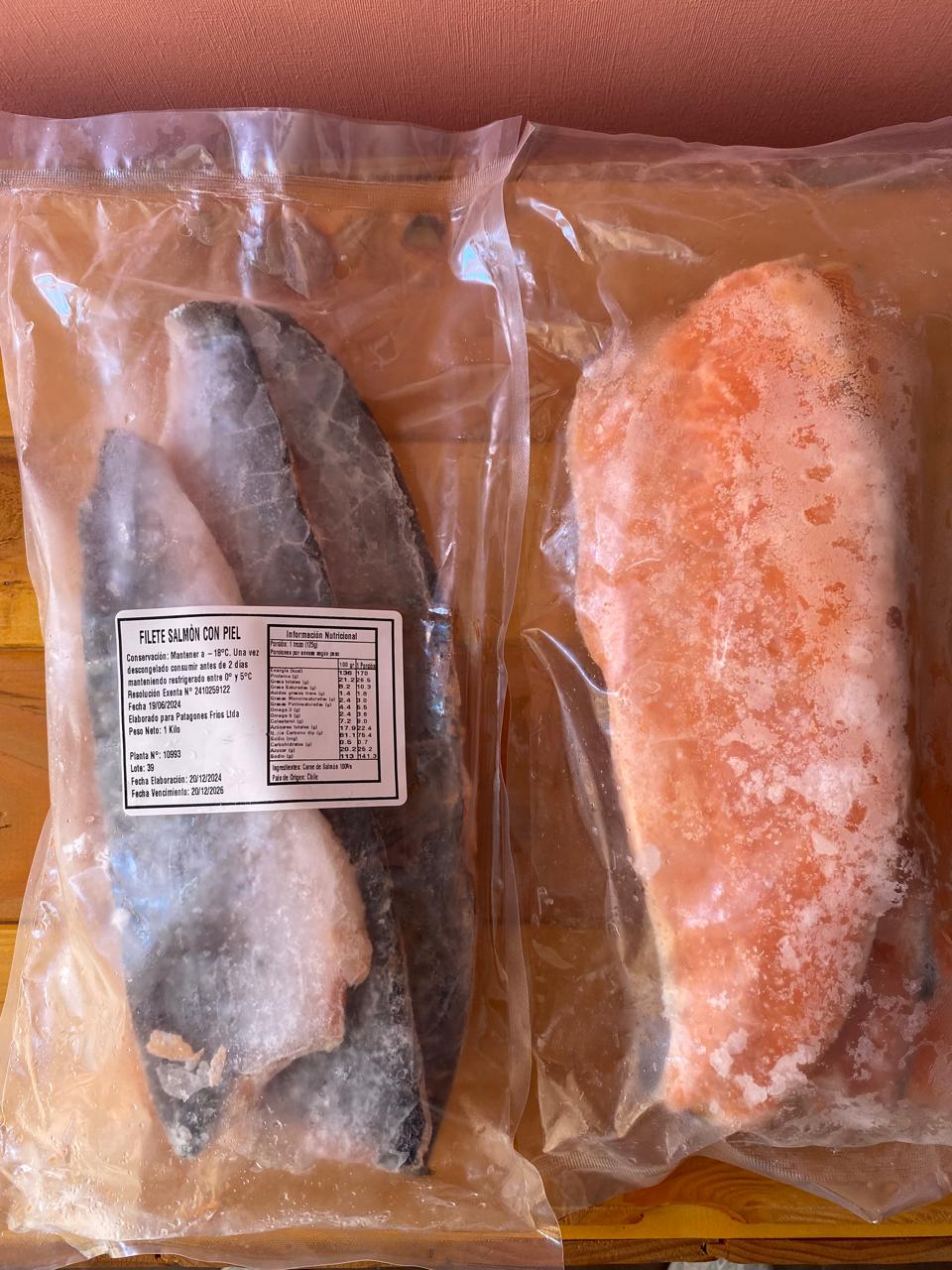Filete de salmón con piel, congelado, en formato bolsa de 1 kilo (3 filetes por bolsa)